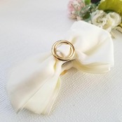 上品で清楚な雰囲気を演出する白いリボンを重ねたバナナクリップです。