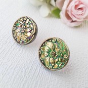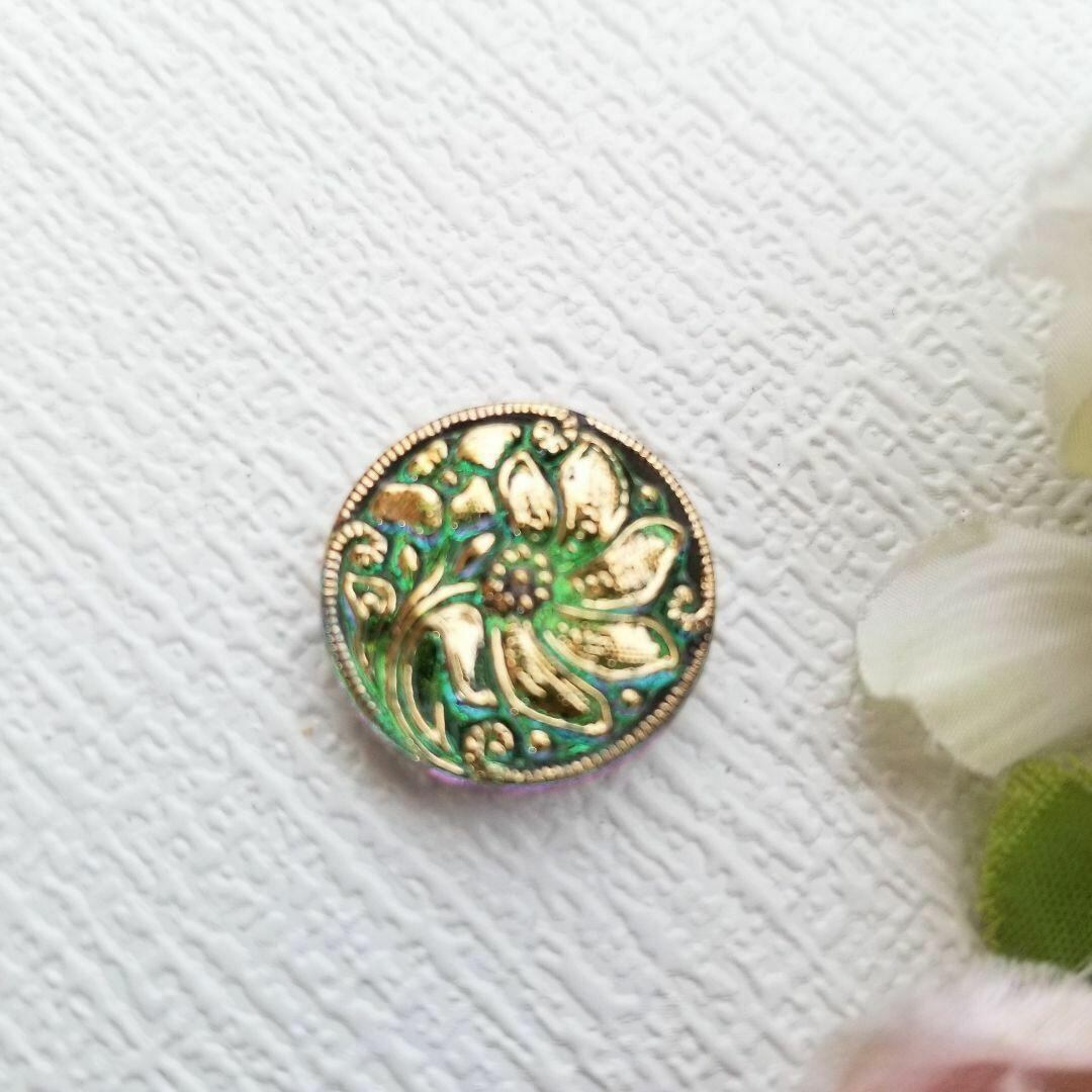 #チェコガラス #チェコビーズ #カボションピアス #ビンテージ風 #レトロピアス #透明感アクセサリー #淡いグリーン #ガラスアクセサリー #春夏アクセ #クリアピアス #イヤリング変更可 #花模様 #アンティーク