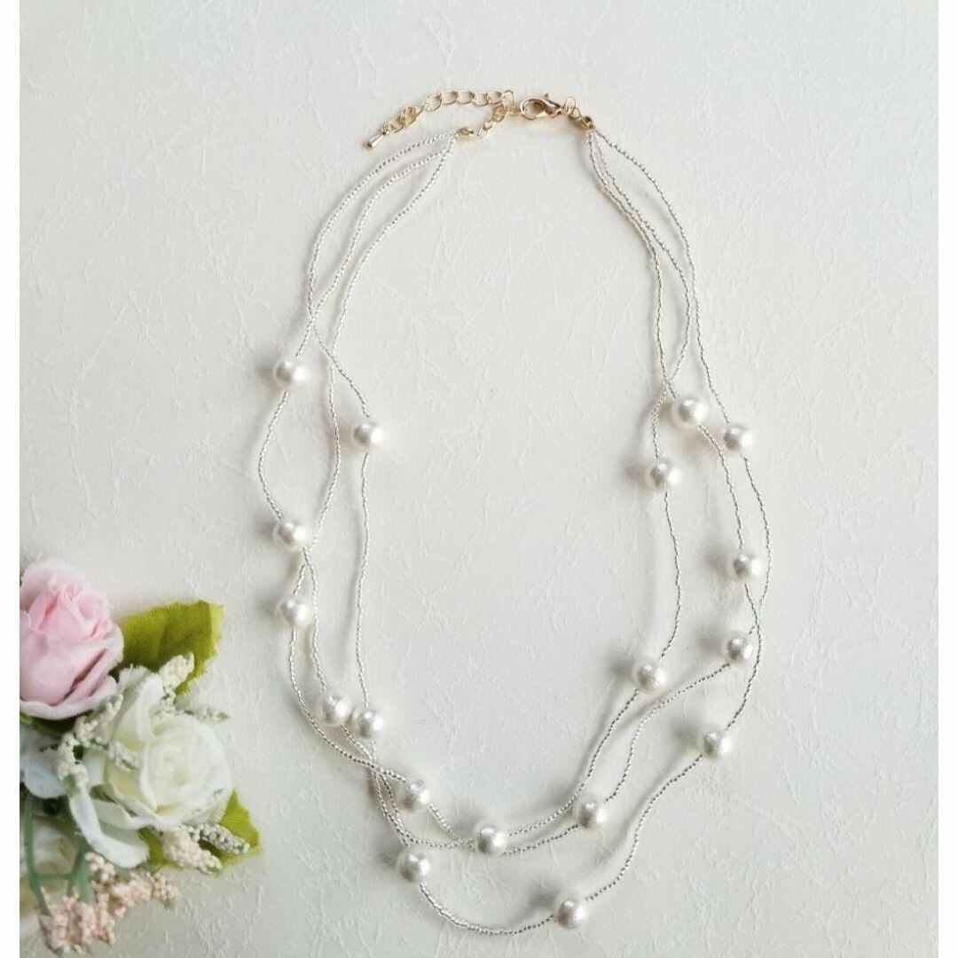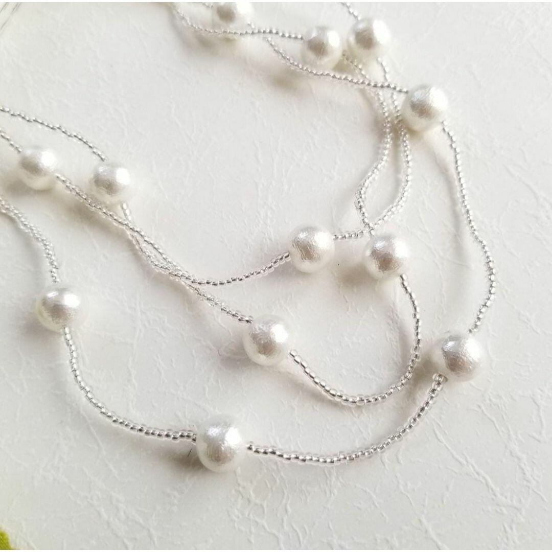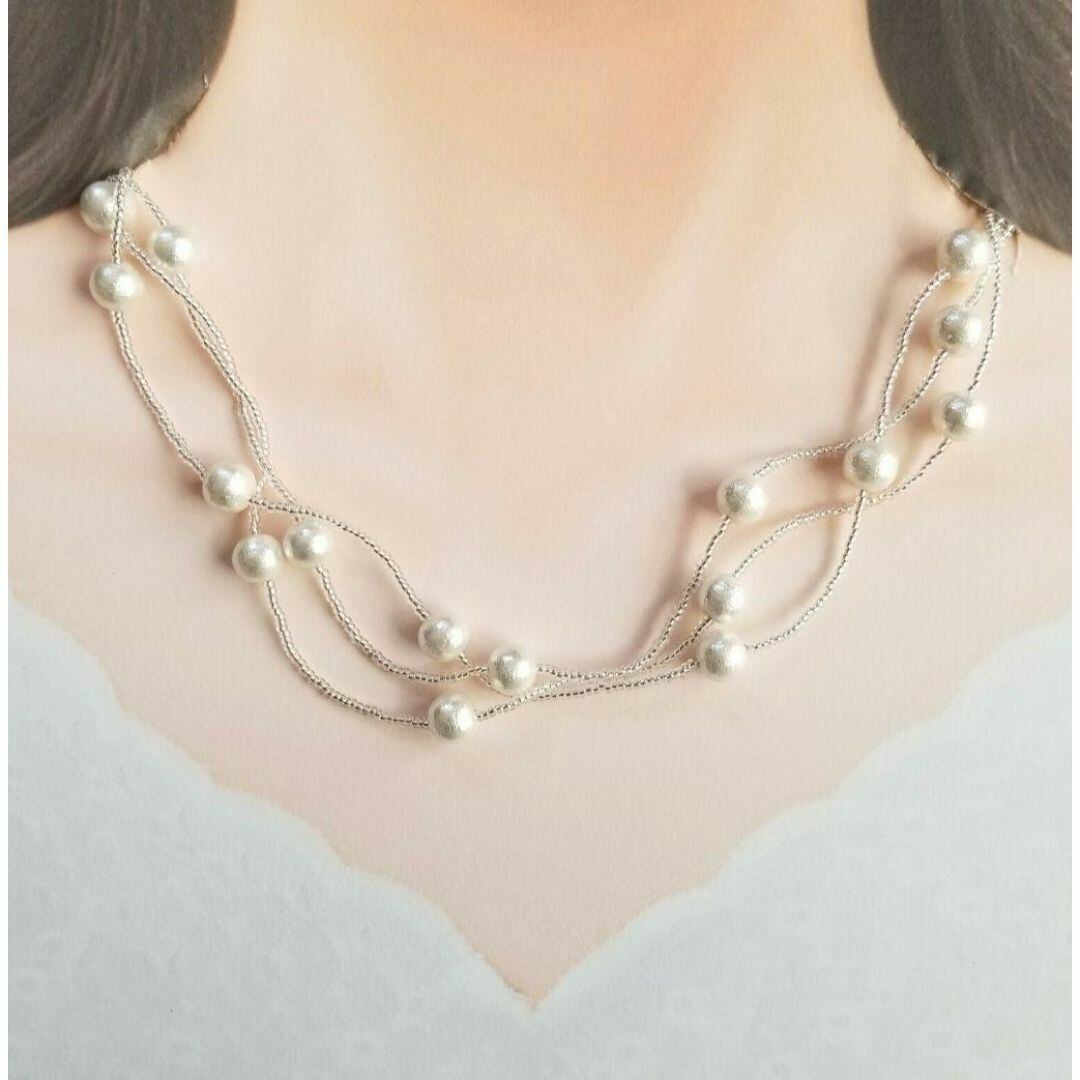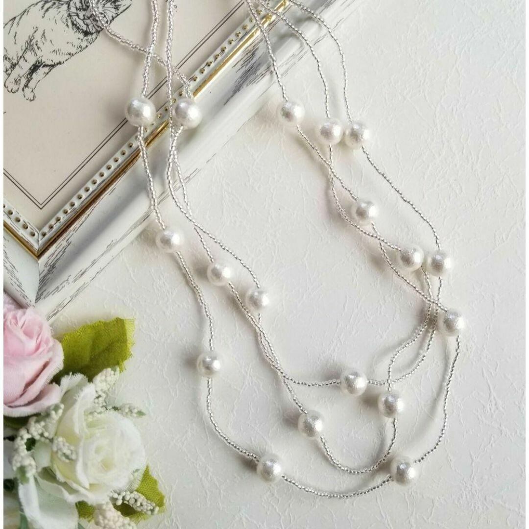 三連コットンパールネックレスふんわりパールの上品アクセサリー n24415