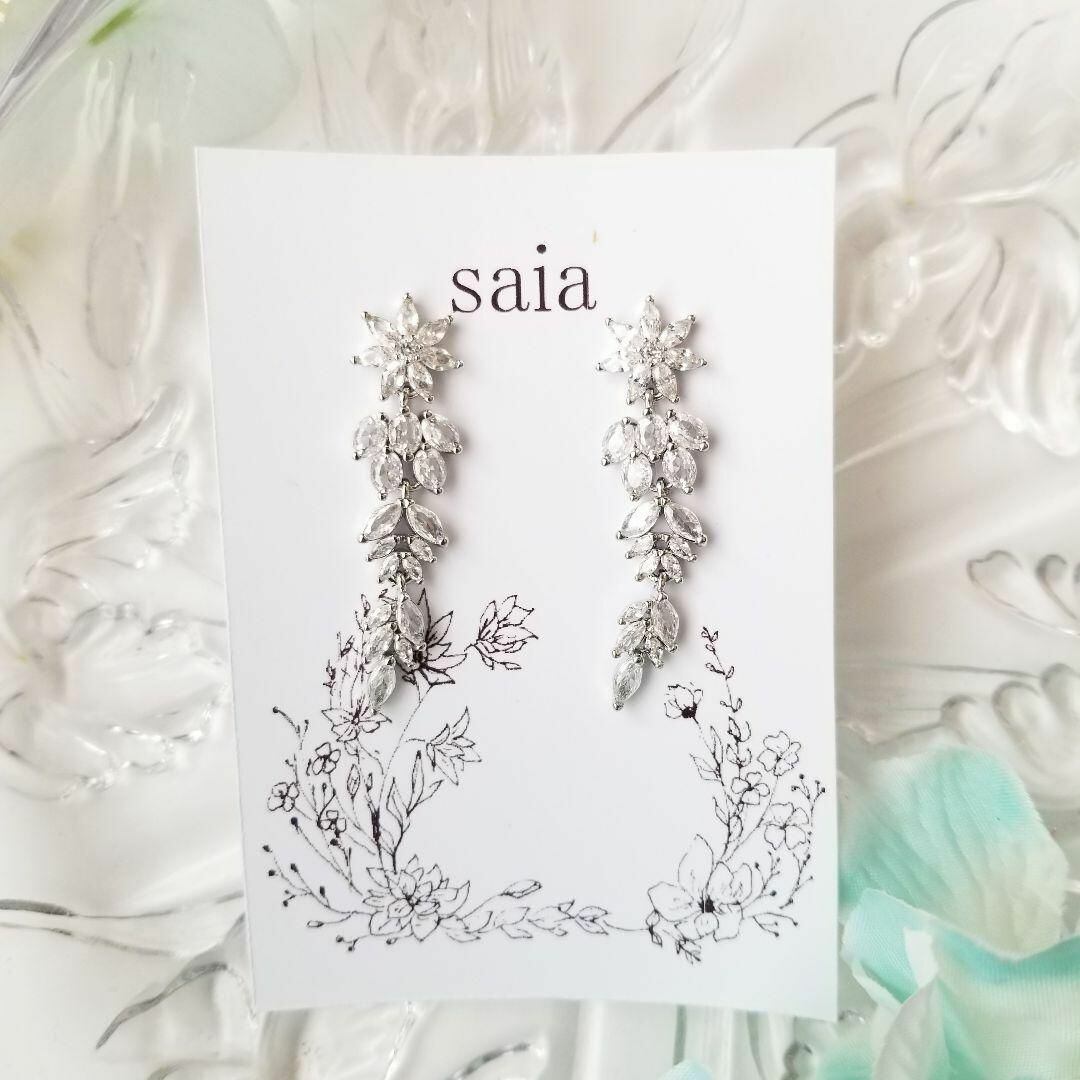 お花モチーフから流れるように並んだビジューが、光を反射して耳元を美しく輝かせます。