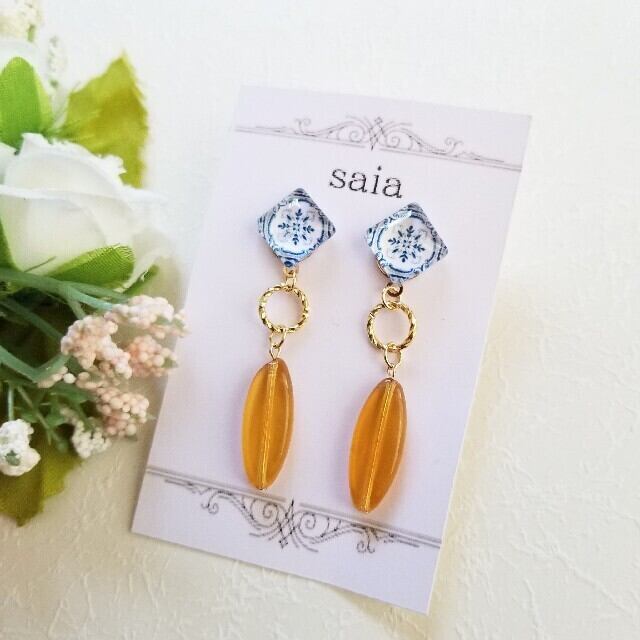 モロッコ柄タイルとチェコビーズのエスニックピアス イヤリング変更可能 p411
