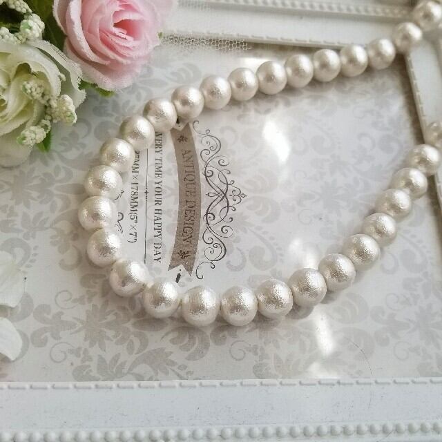 10mmコットンパールの上品ネックレス*軽やか&華やかアクセ n0101