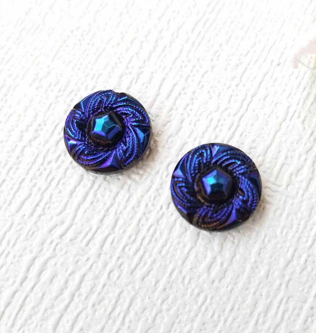 光の角度でブルーからネイビーへと表情を変える、チェコ製の美しいガラスボタン。
