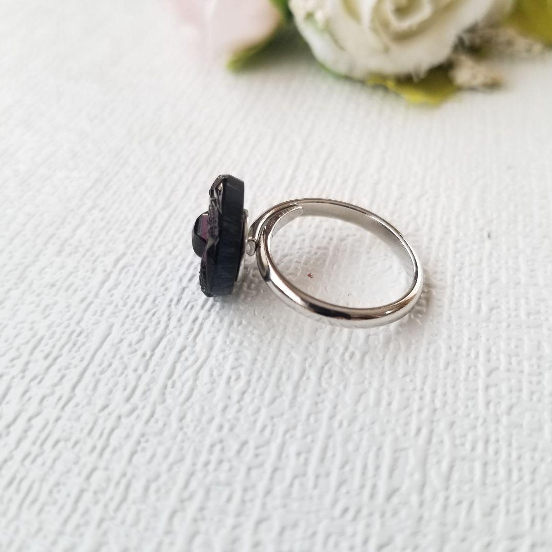 クラシカルな雰囲気を纏うガラスボタンは、角度によってほのかに表情を変え、落ち着いた輝きが魅力です。