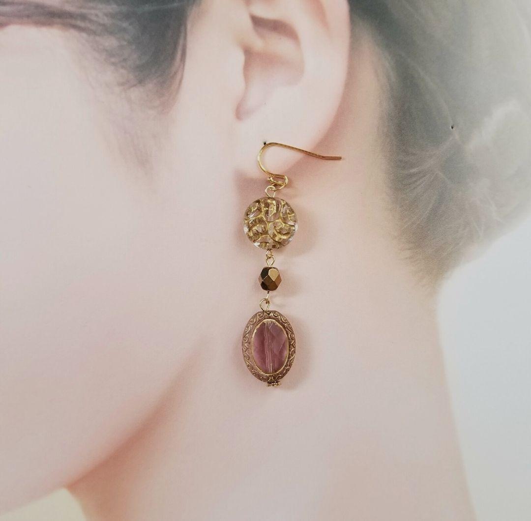 アンティーク調ガラスの秋冬ロングピアス p0514