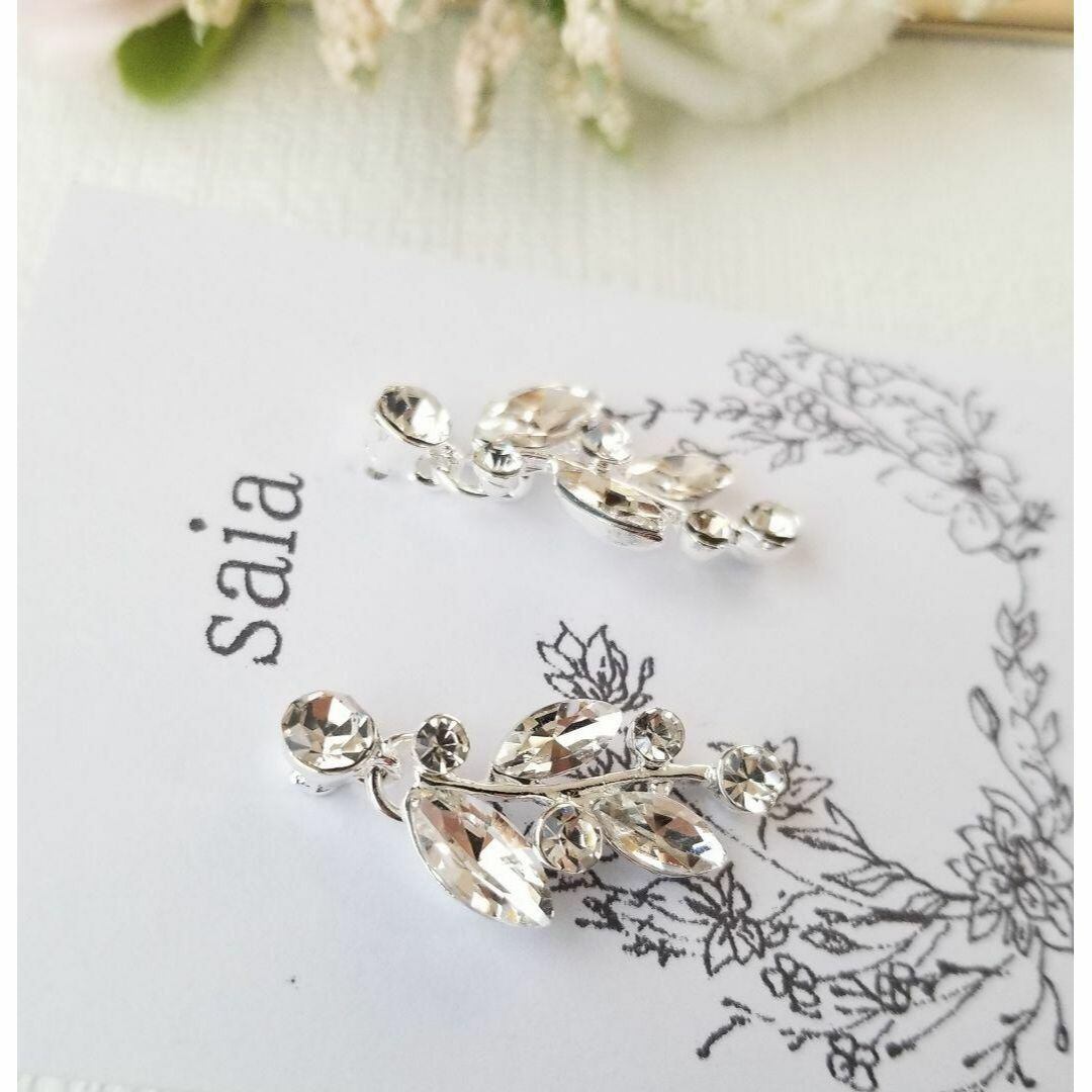 上品に煌めくリーフモチーフのビジューをあしらった、ウエディングネックレスとイヤリングのセットです。