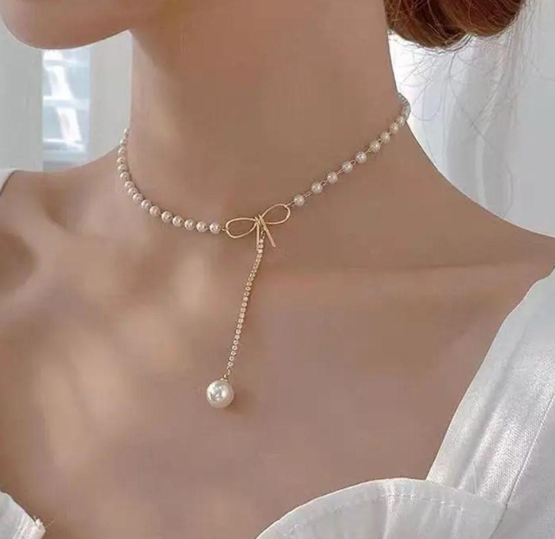シンプルながらもリボンとジルコニアの揺れ感が目を惹き、デコルテを上品に演出してくれます。