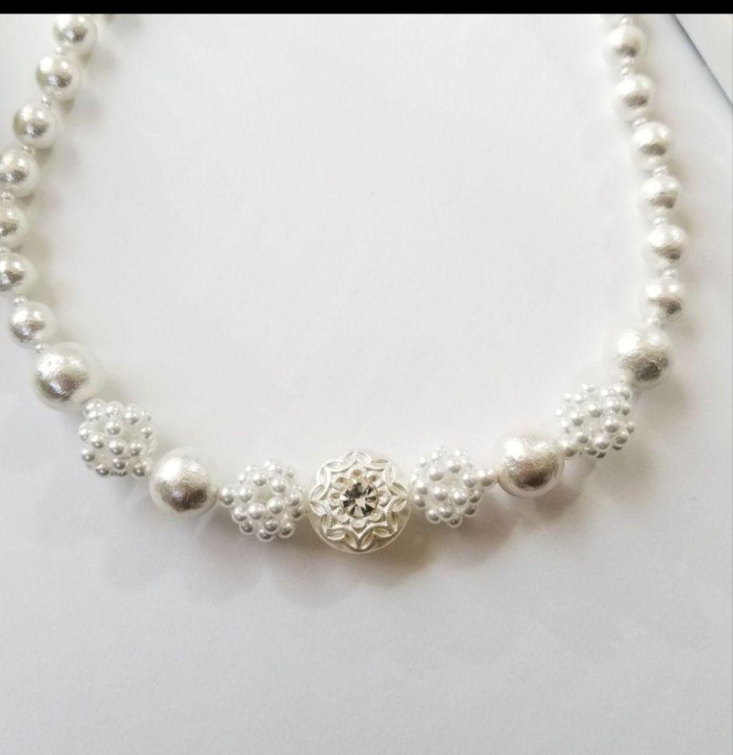 チェコガラスボタンとコットンパールのネックレス|フォーマルアクセサリー