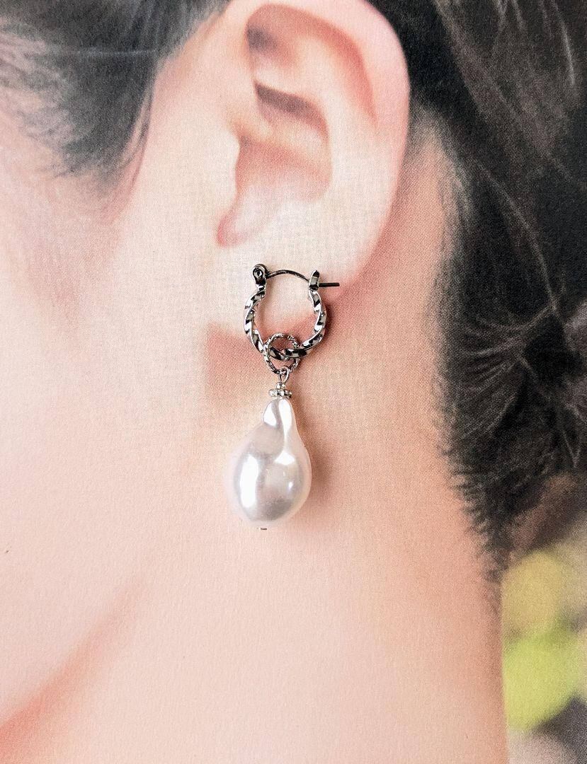 ツイストデザインのフープに、上品な艶を放つパールを合わせました。