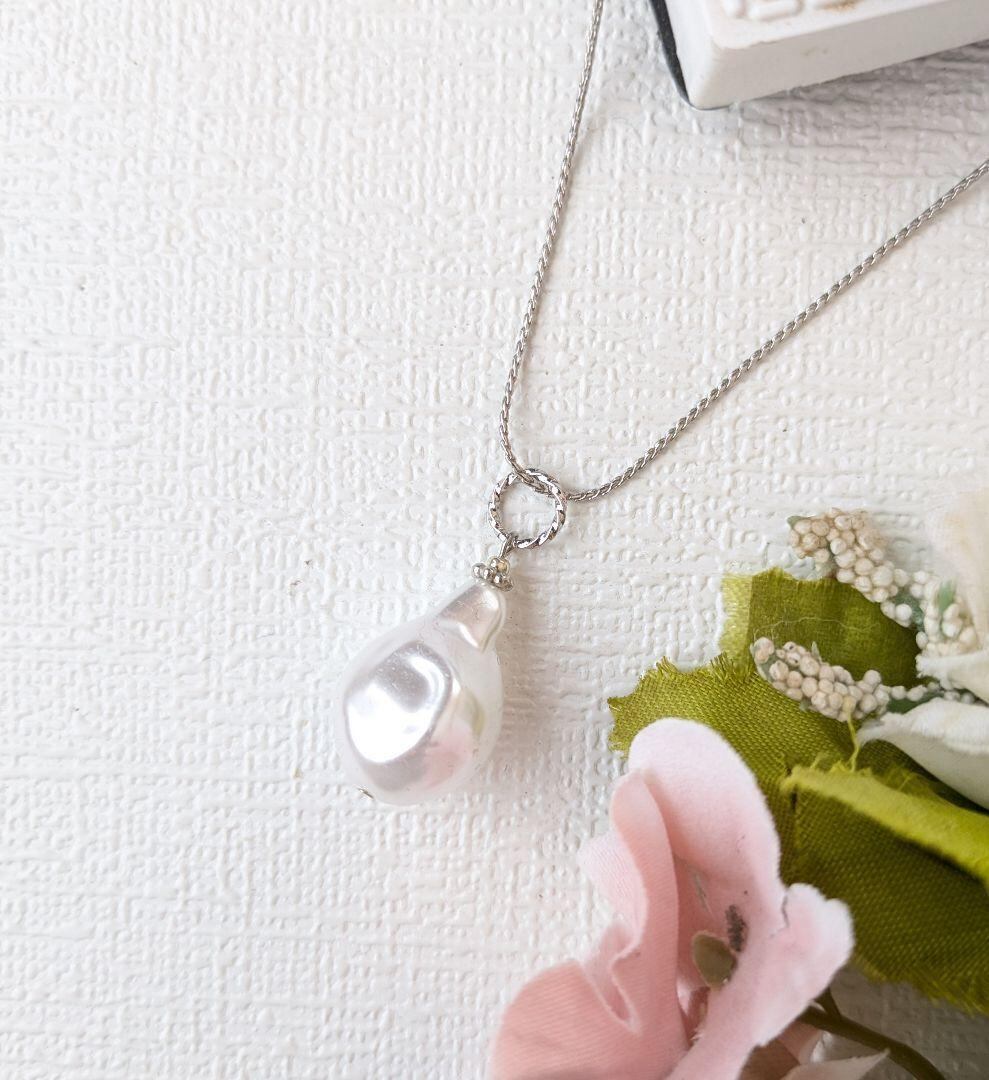 やわらかい光を放つ**ドロップ形のバロックパール(樹脂)**を使用した、