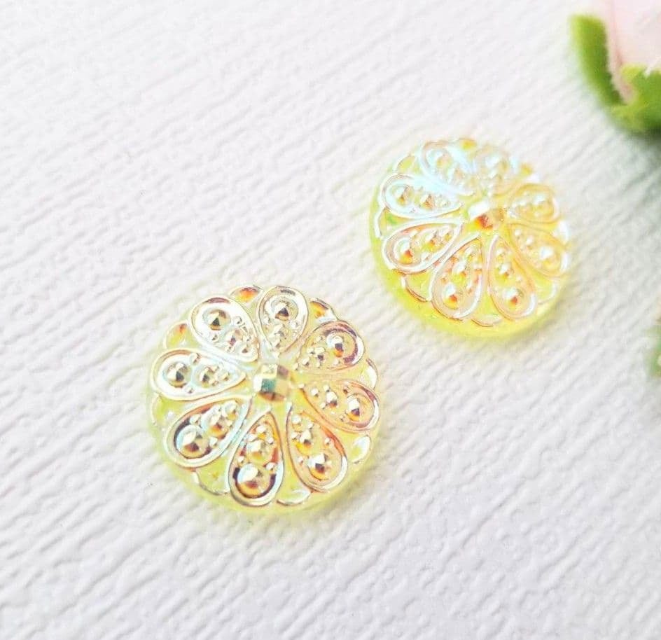 チェコの職人の手で一つ一つ丁寧に作られた伝統的なガラス工芸の**フラット型18mmのチェコガラスボタン(ウランガラス)**です。