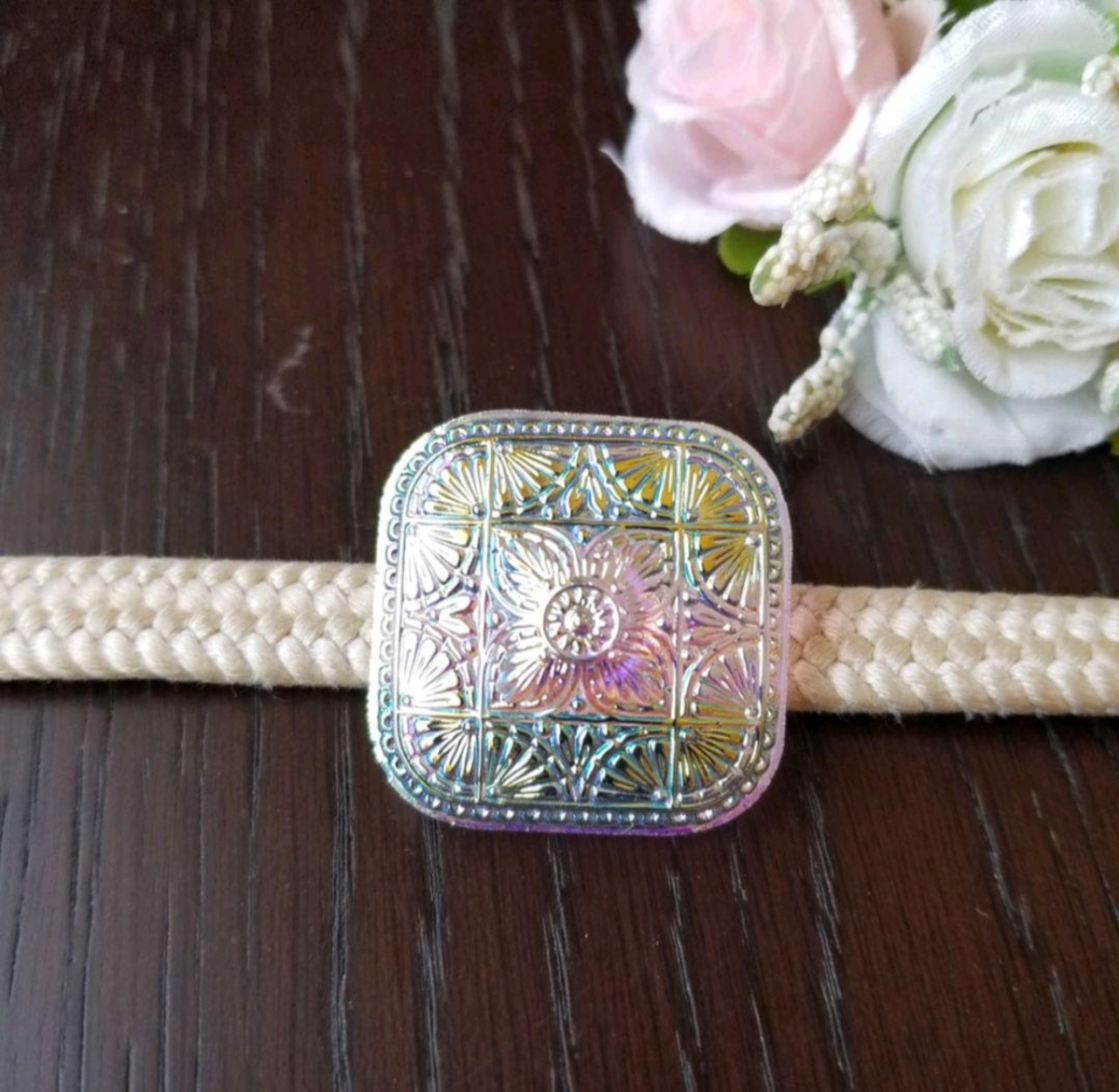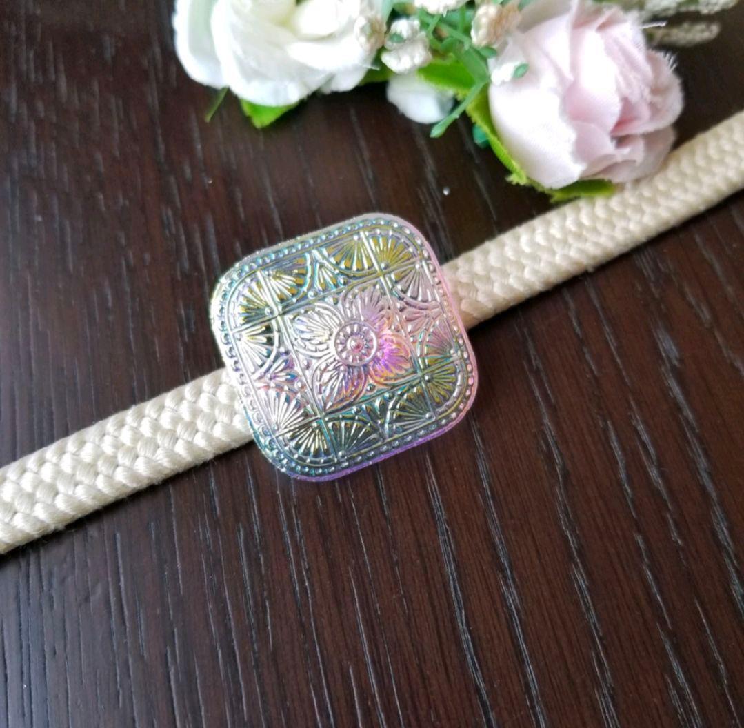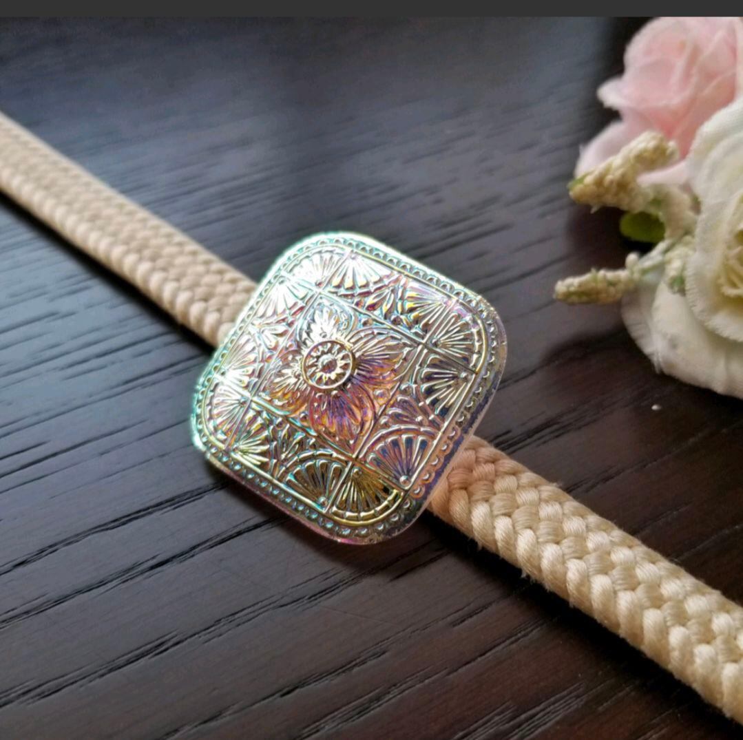 チェコガラスボタン ポニーフック/帯留め|スクエア型|オーロラ|上品な輝き