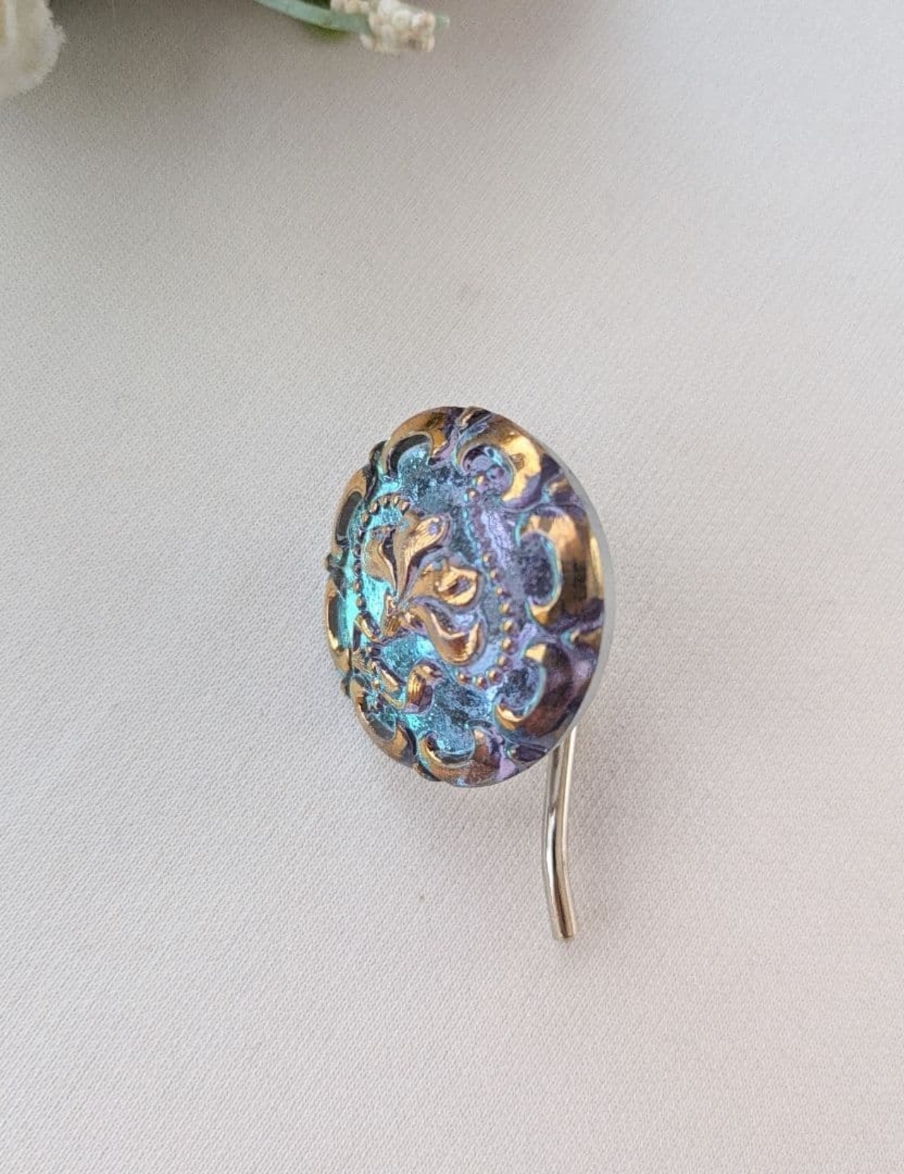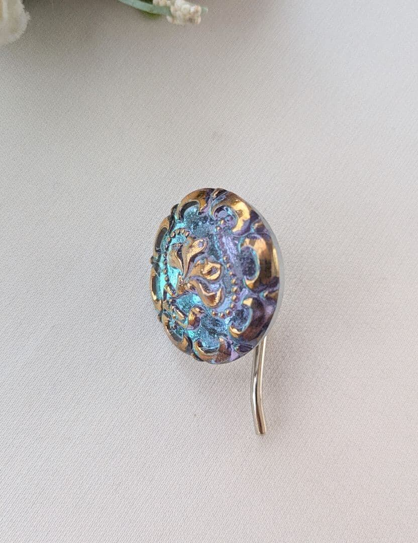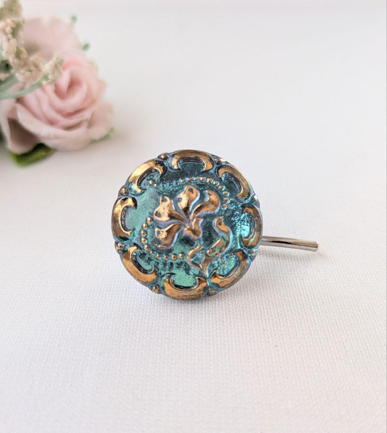 チェコガラスボタン ポニーフック/帯留め 27mm|アンティーク調 和装にも