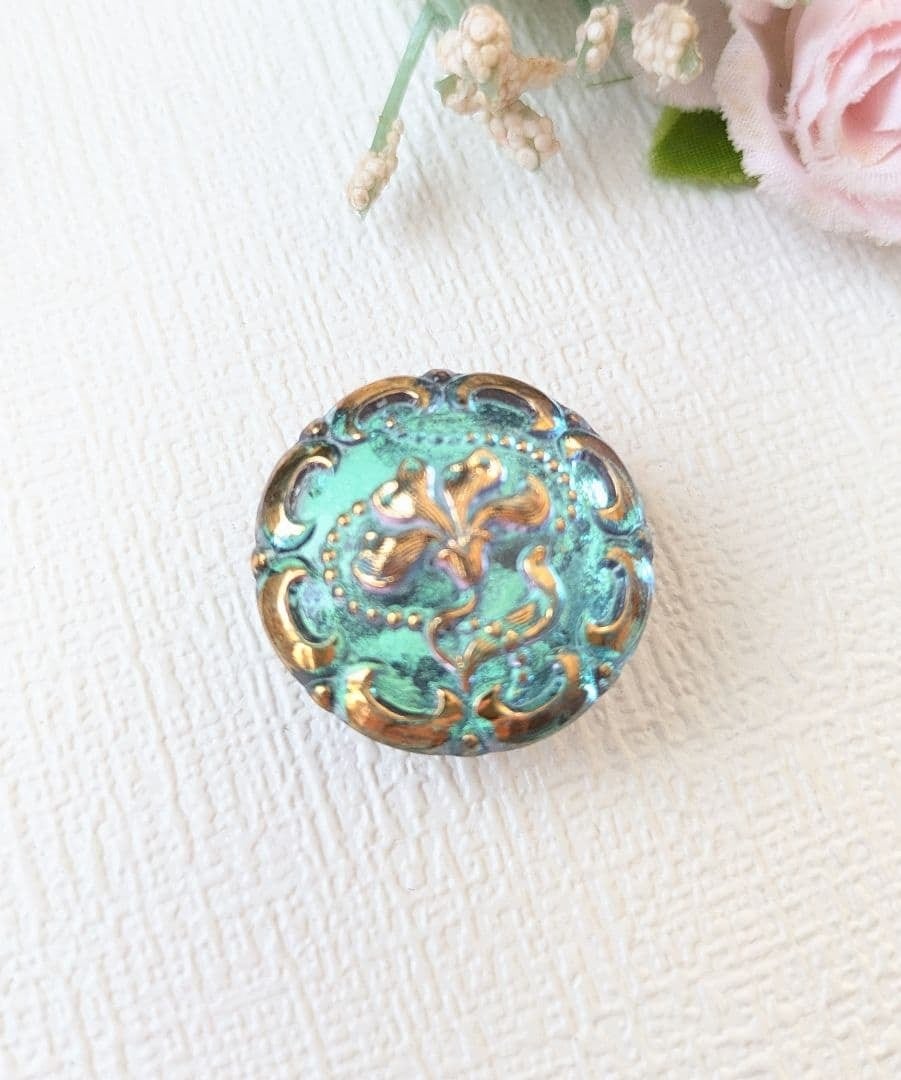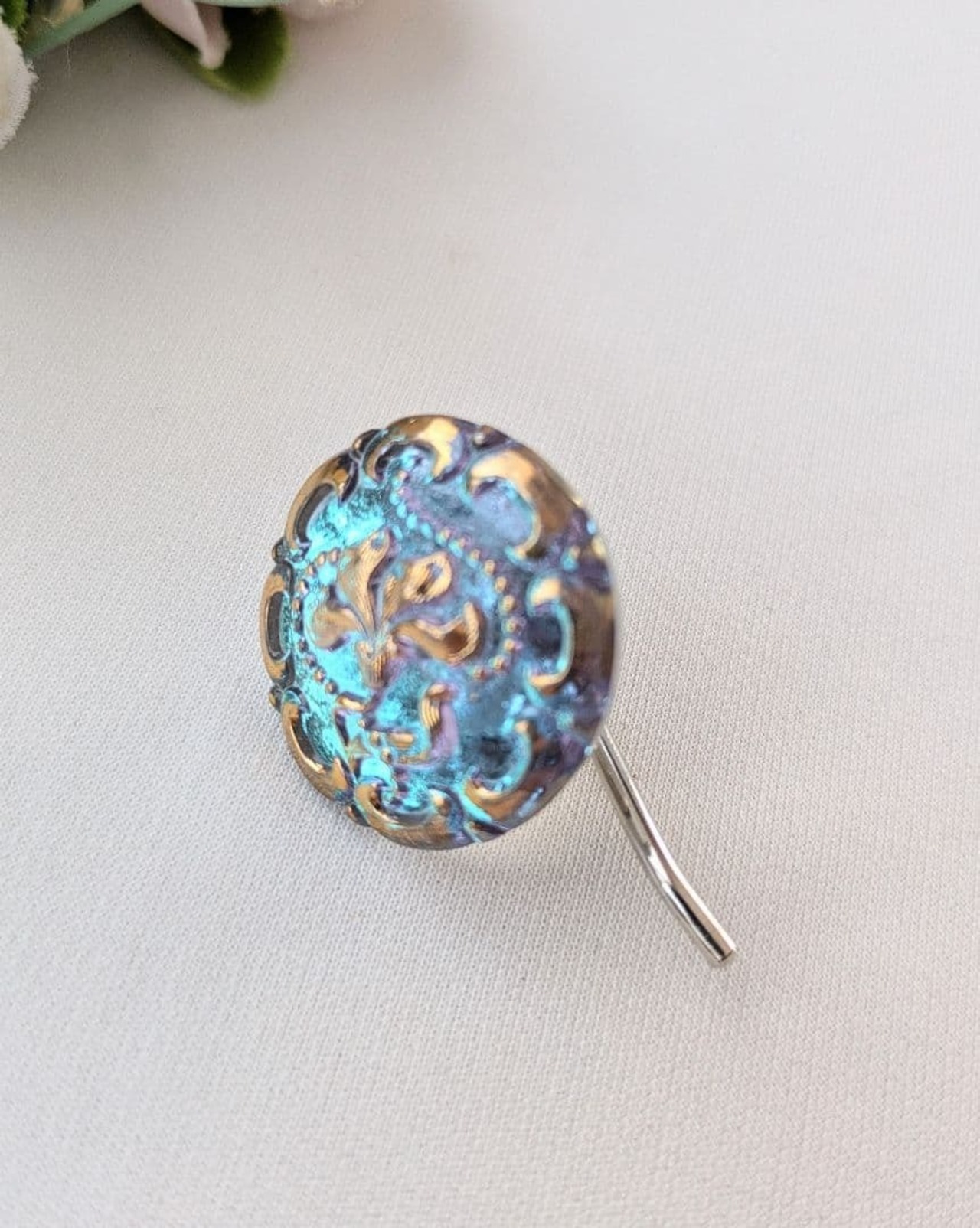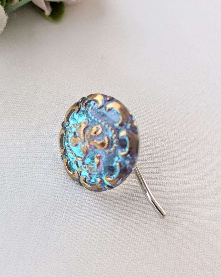 チェコガラスボタン ポニーフック/帯留め 27mm|アンティーク調 和装にも