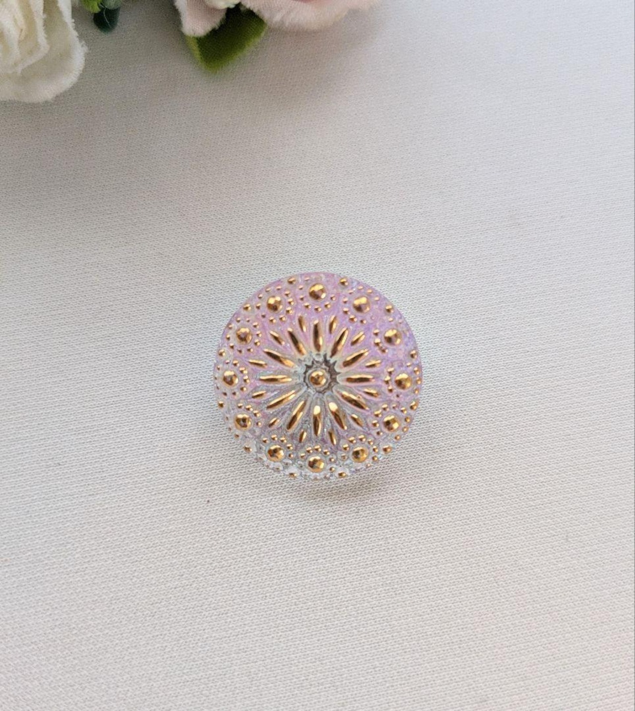 チェコガラスボタンのポニーフック/帯留め 選択式|ゴールド×オーロラの輝き|和装
