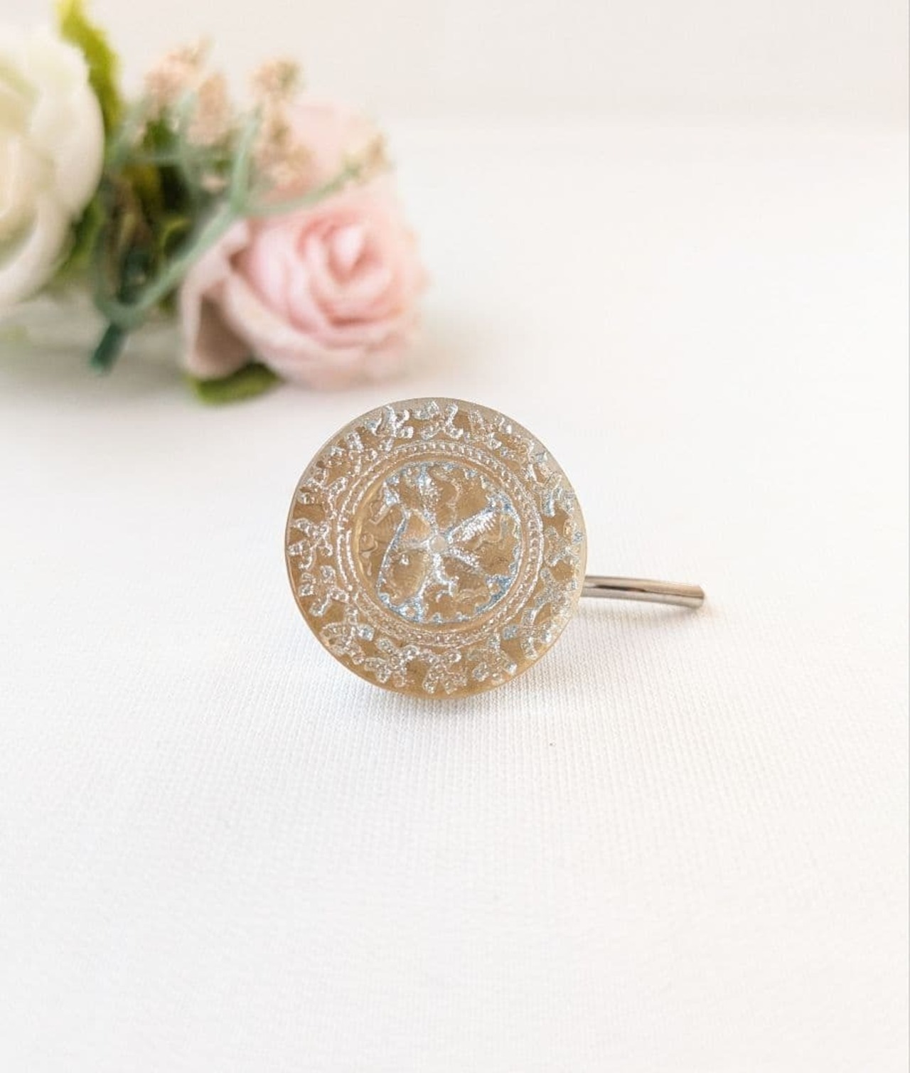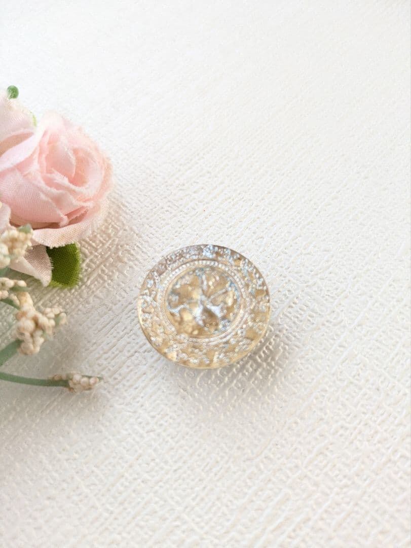 放射線模様 クリア×ゴールド チェコガラスボタンのポニーフック/帯留め