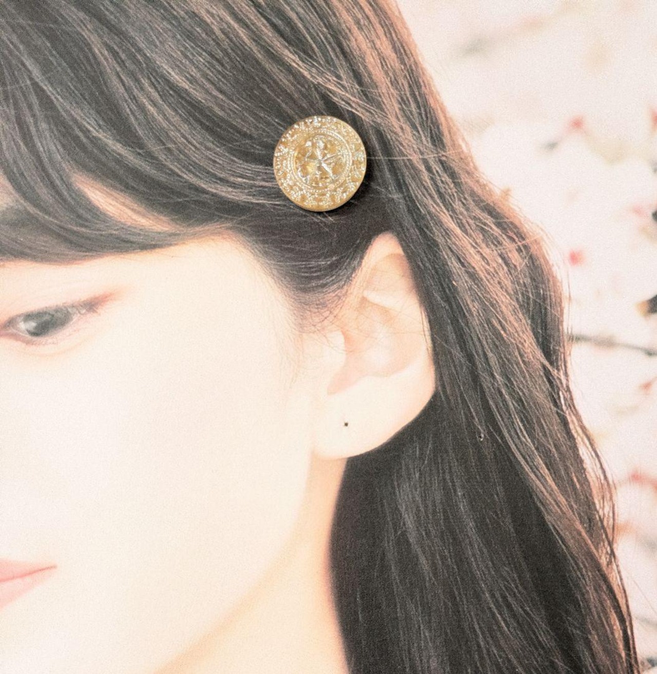 チェコ製ガラスボタンを使用したヘアアクセサリーです。