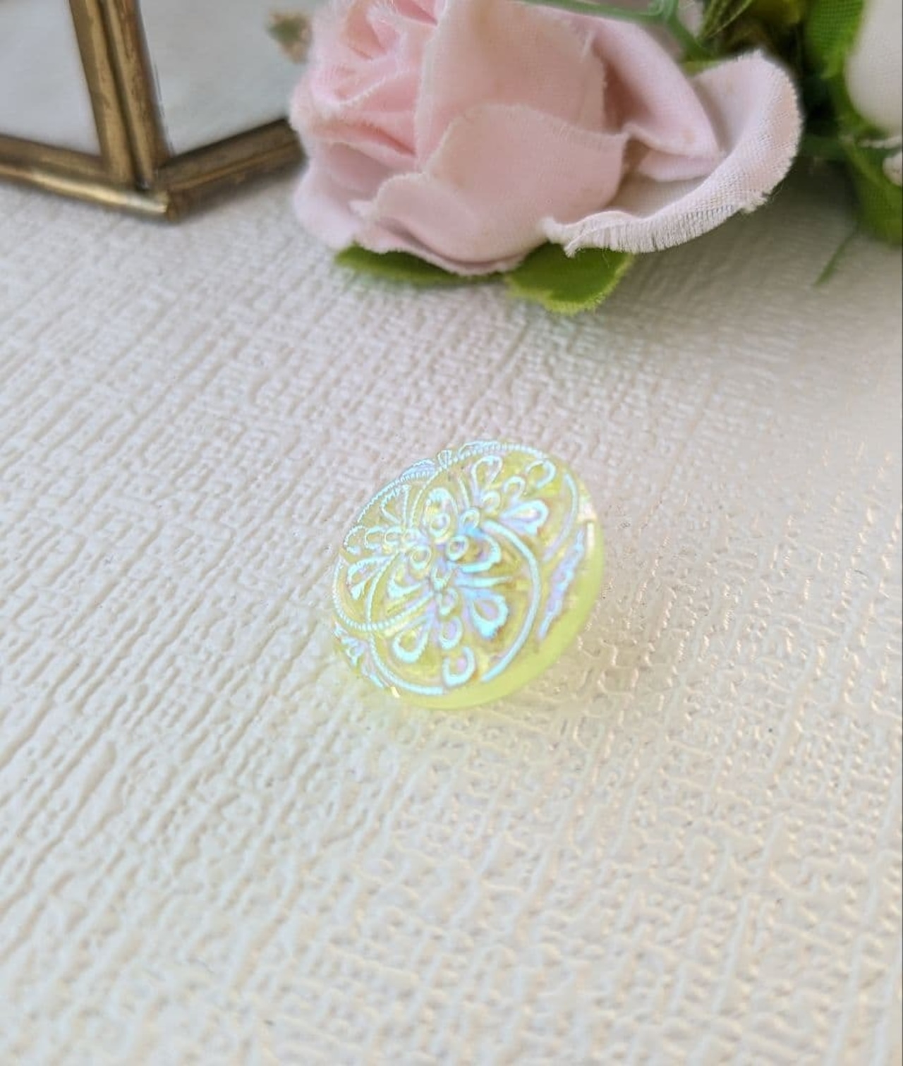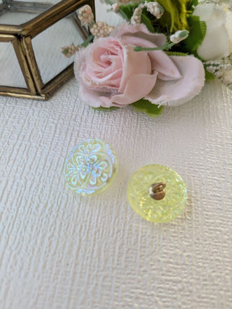 #ハンドメイド #ウランガラス #レモン色 #チェコガラスボタン #アクセサリーパーツ