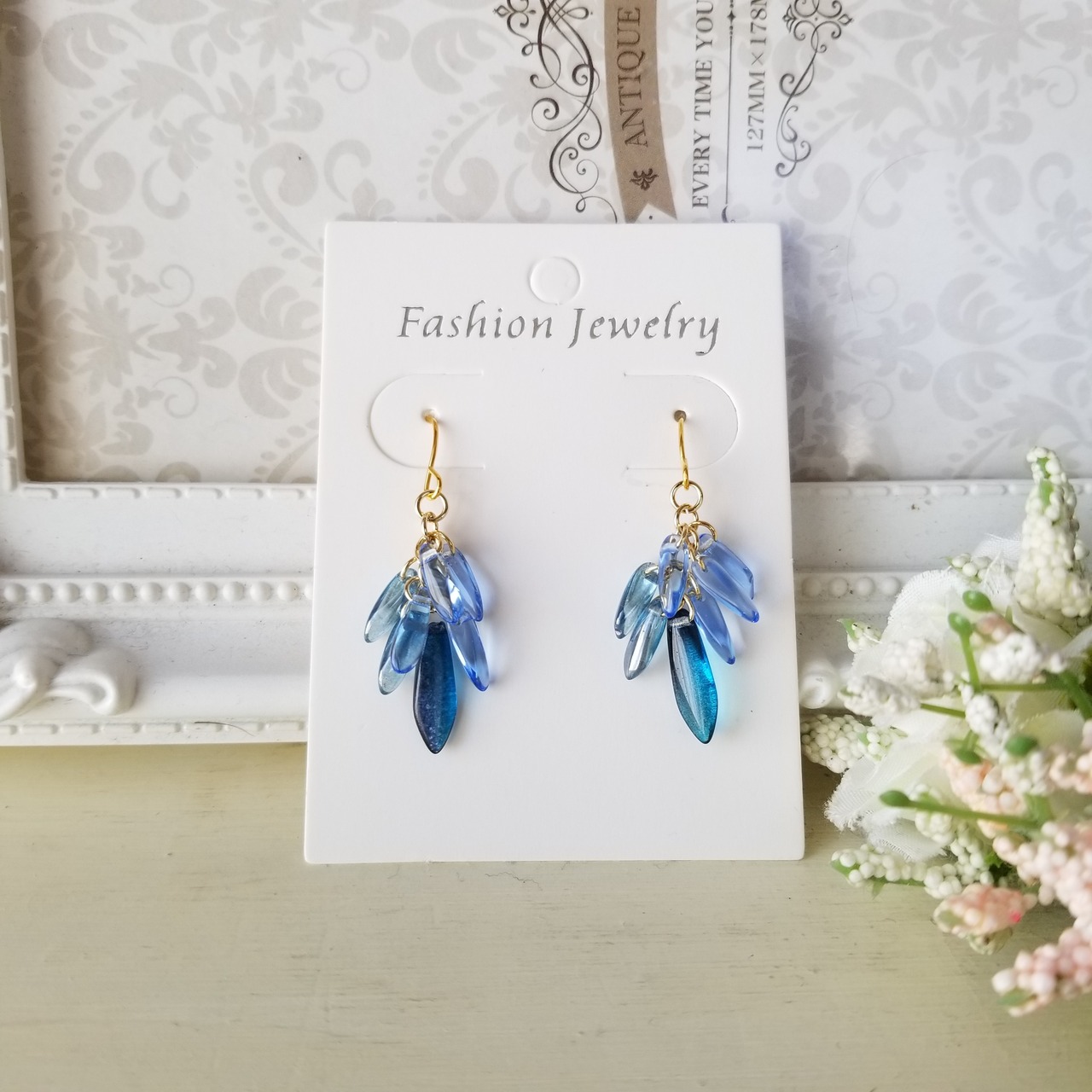 濃さの違う三種類のブルーを合わせてゆらゆら揺れるピアスです。