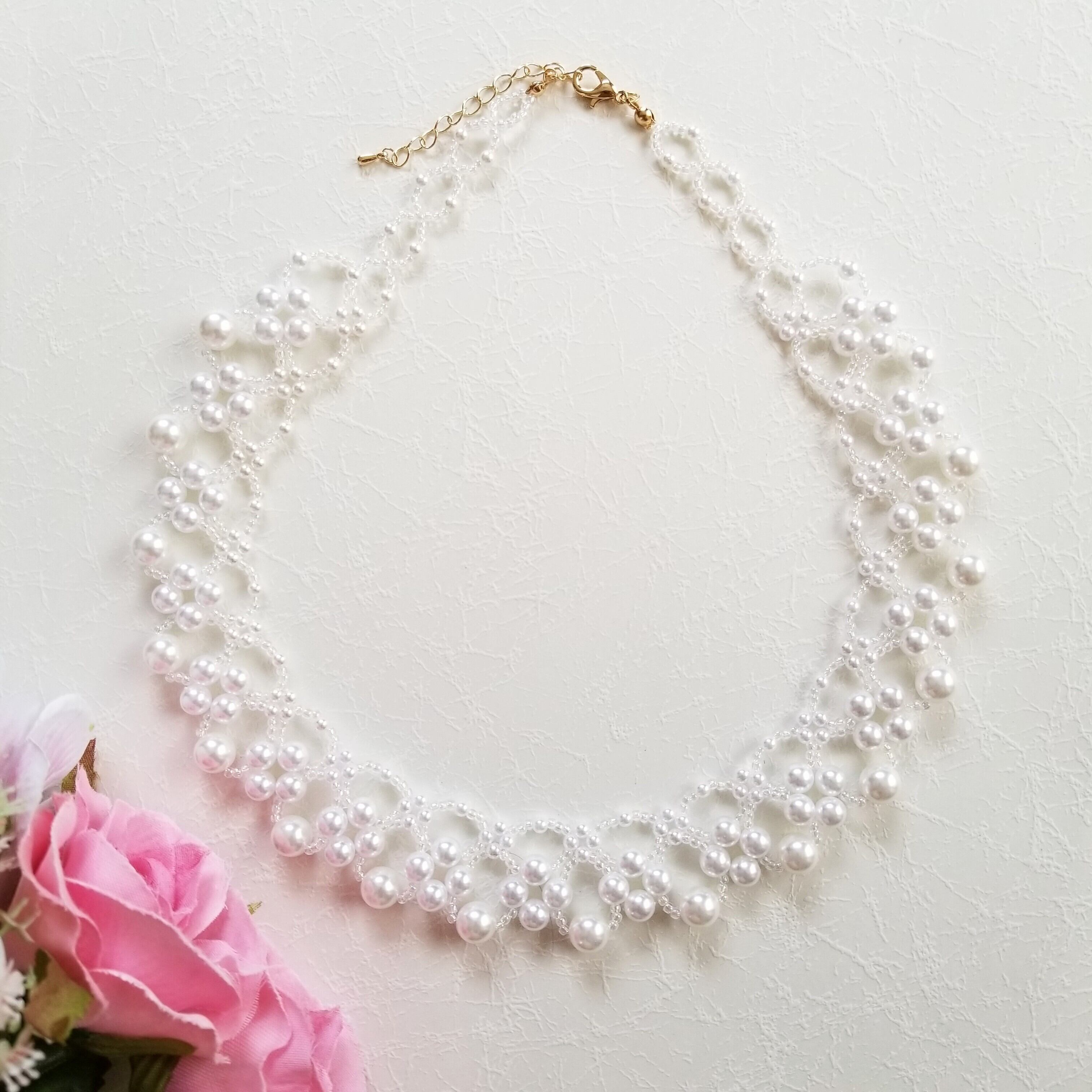 ホワイトパールと丸小ビーズで作ったネックレスです。