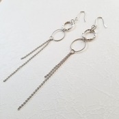 シルバーのデザインリングを繋げた涼しげなピアスです。