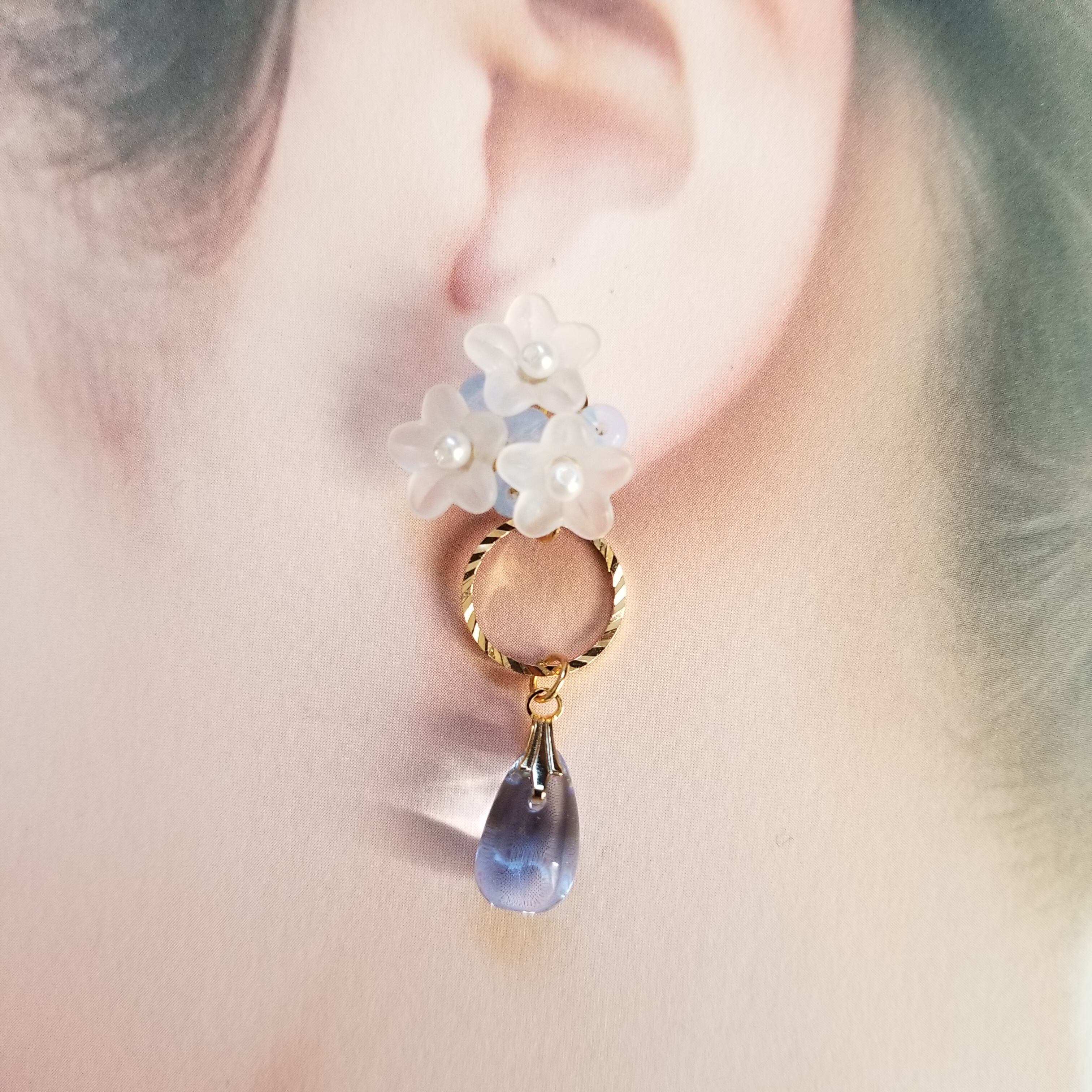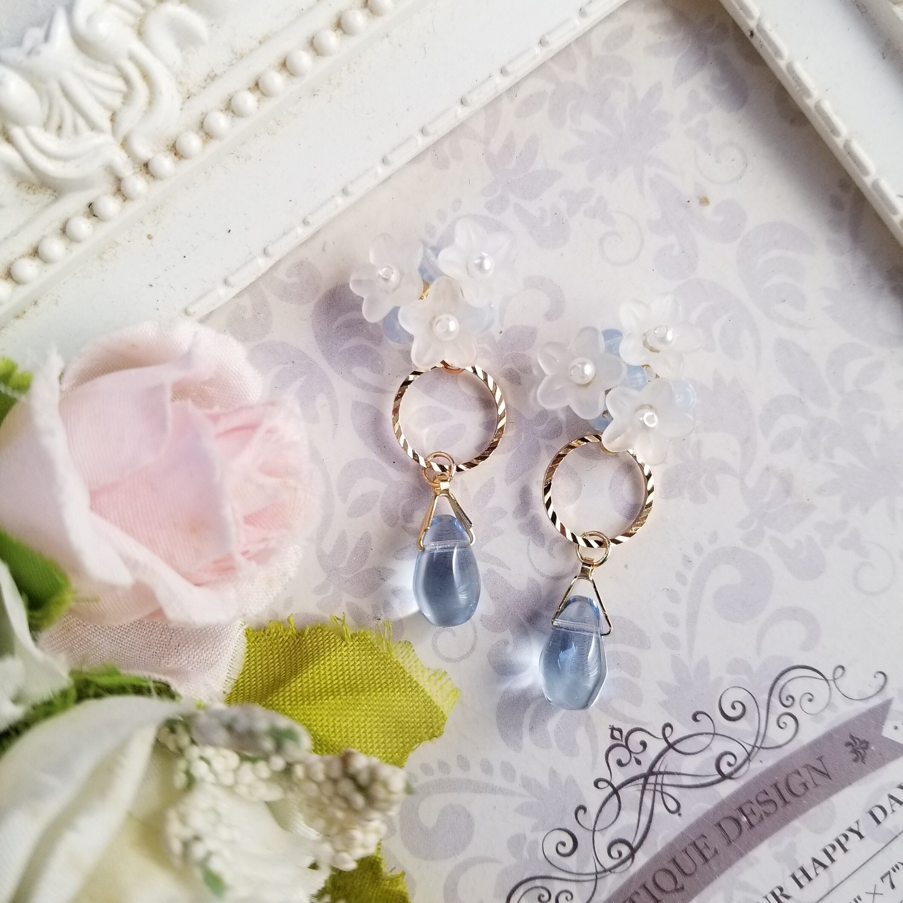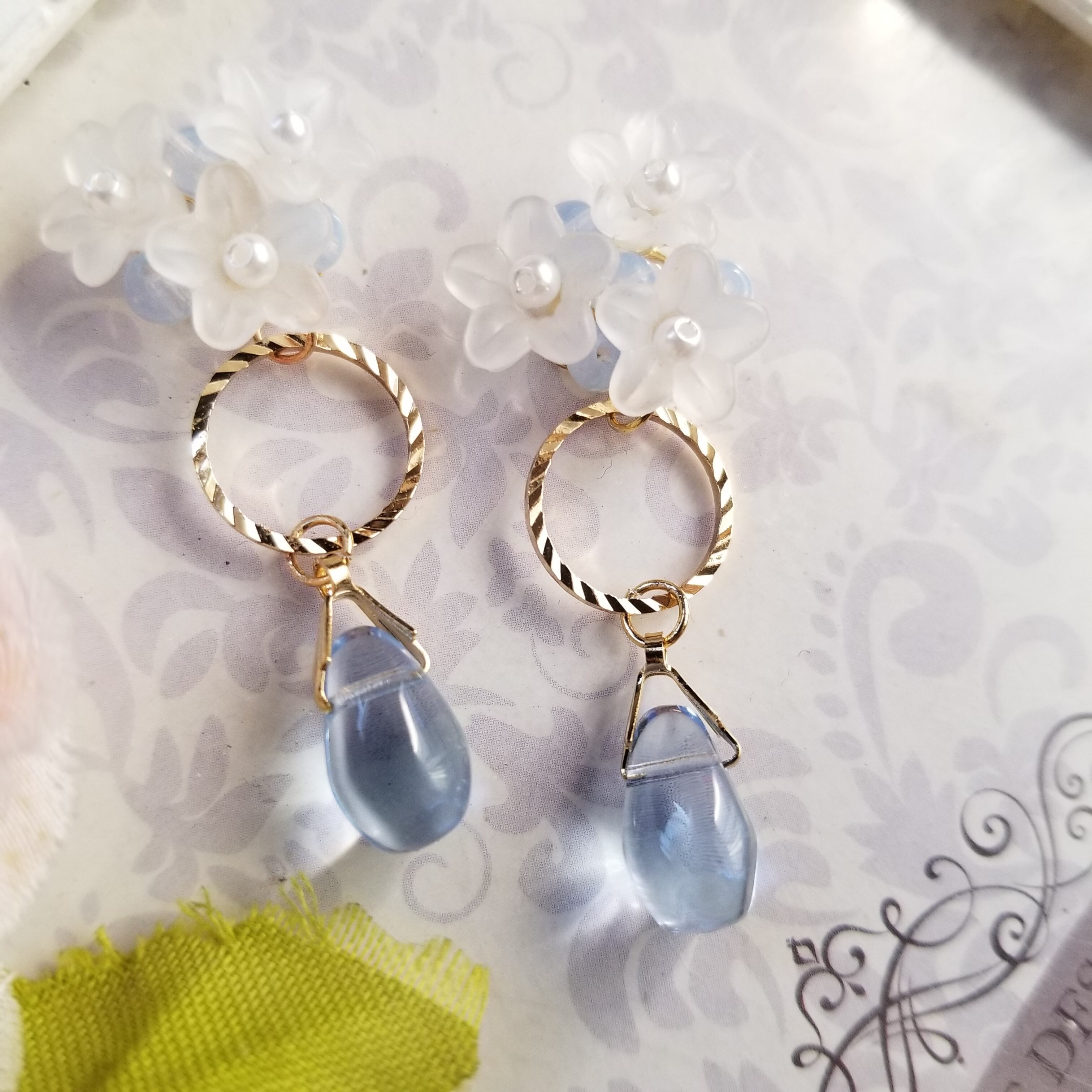 小さなお花とチェコ雫ビーズのピアス又はイヤリング 結婚式、成人式、卒業式、入学式
