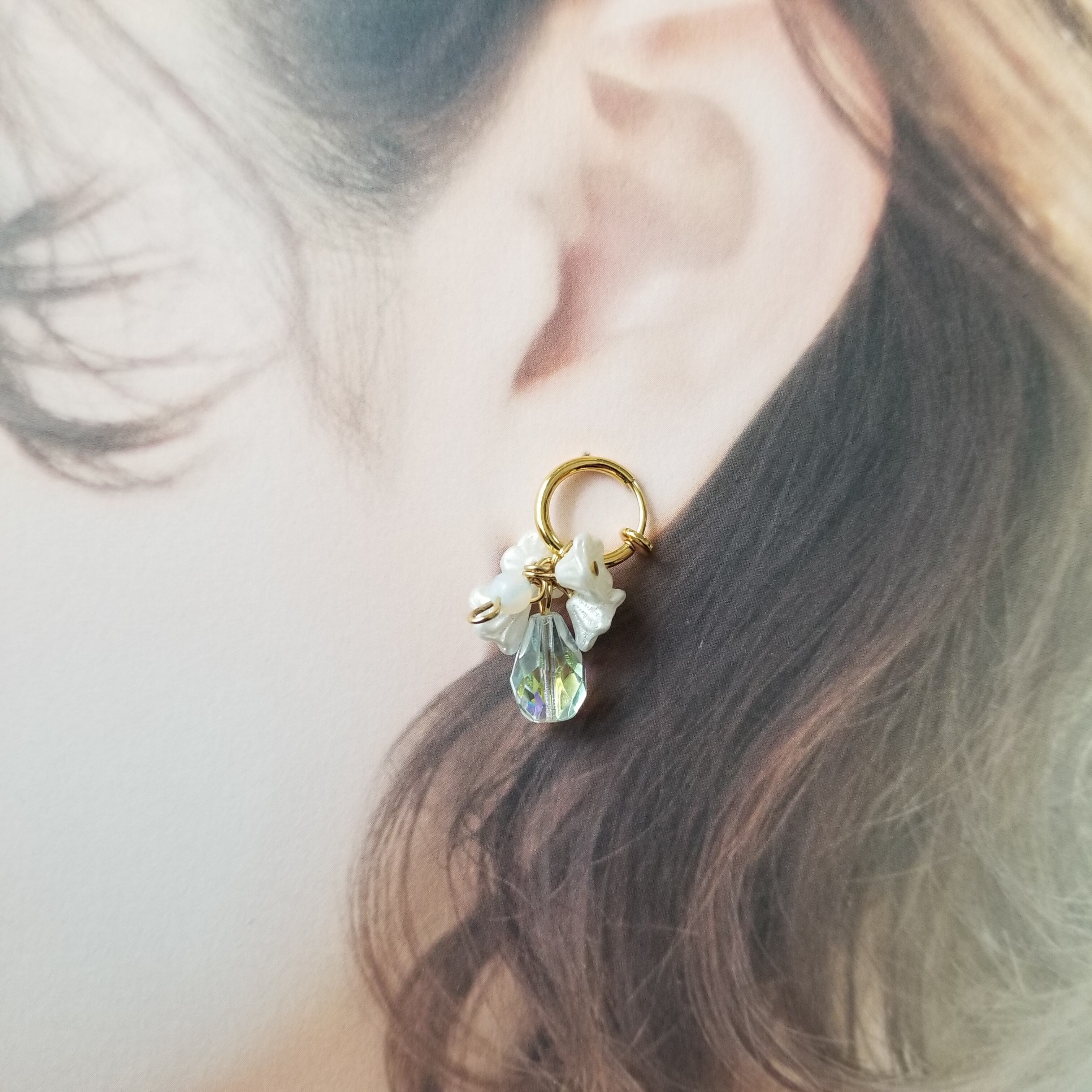 2way お花とパールのフープイヤリング 結婚式、入学式、成人式、卒業式