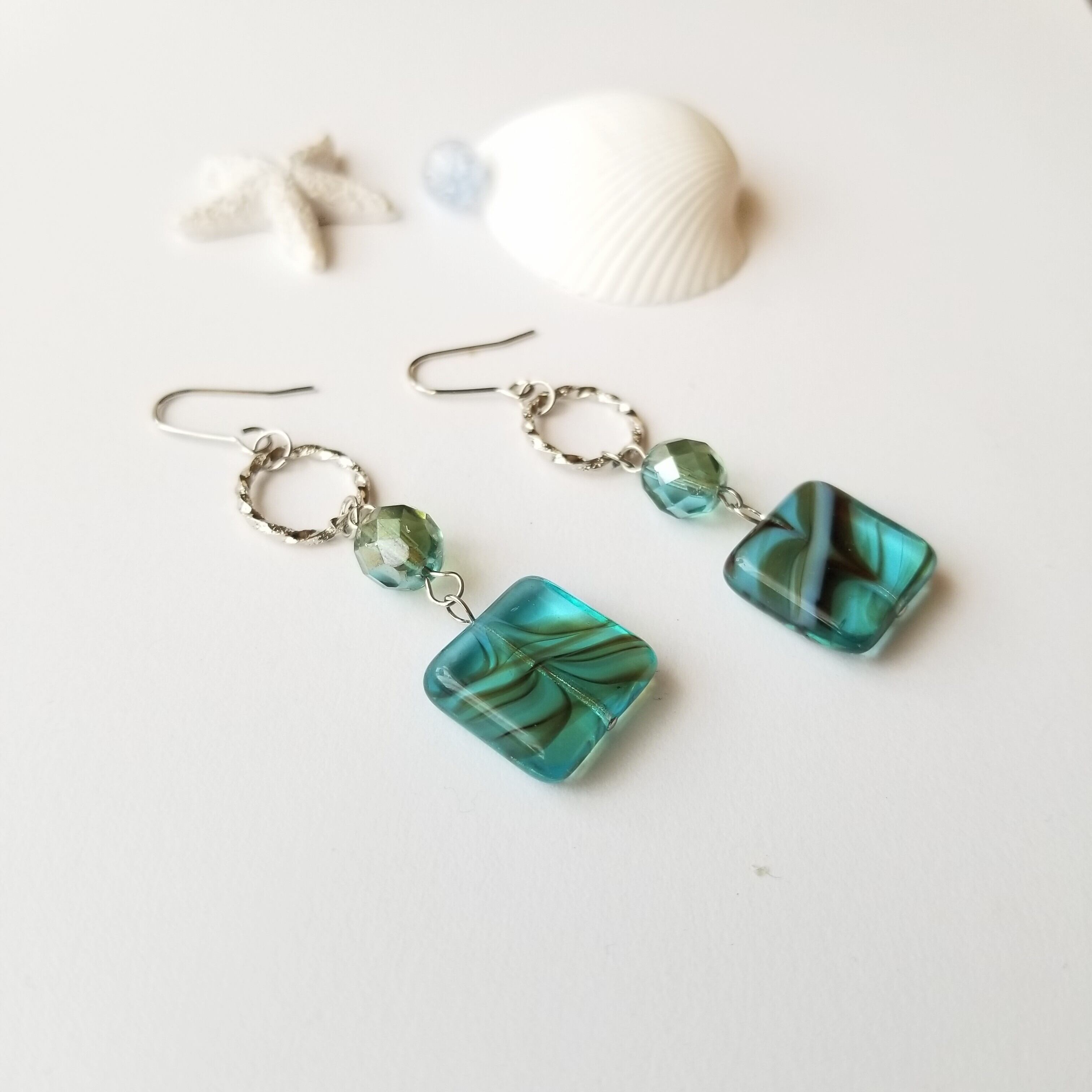 海のような色合いご綺麗なチェコビーズのピアス又はイヤリング 結婚式、卒業式、成人式、入学式