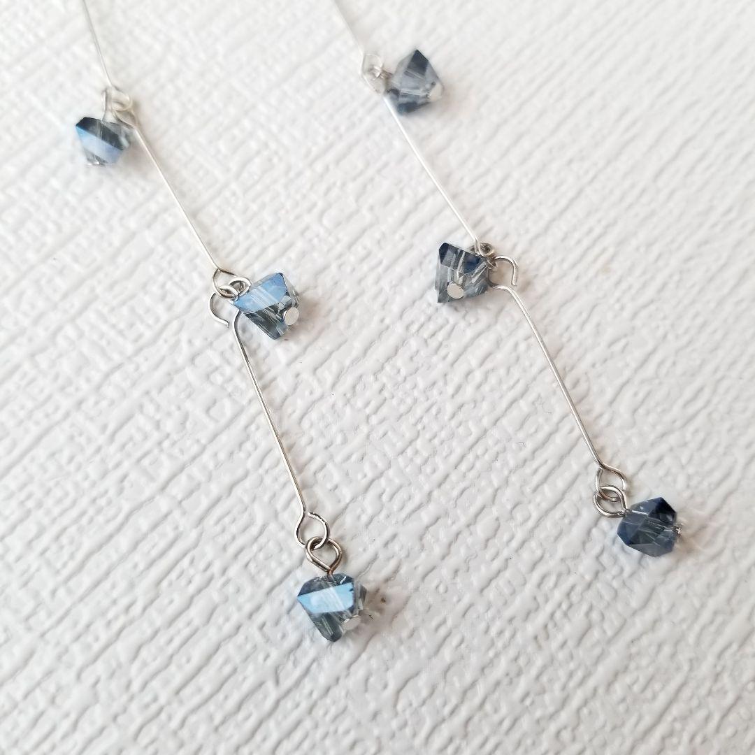 鋭角的な三角カットが施された濃いブルーのチェコビーズを使用しています。