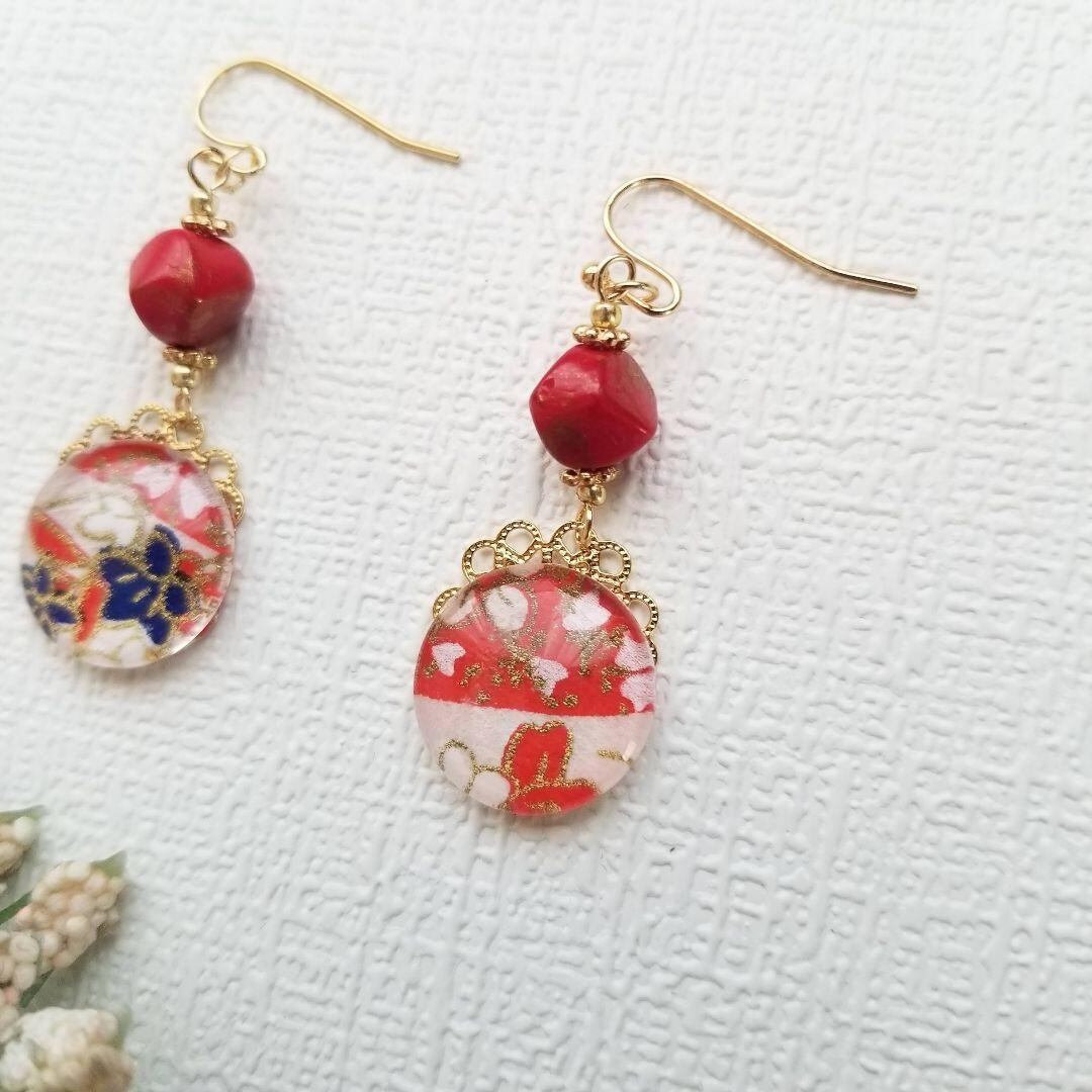 また朱色のチェコビーズが優美に繋がり、伝統的な和の雰囲気を一層引き立てています。