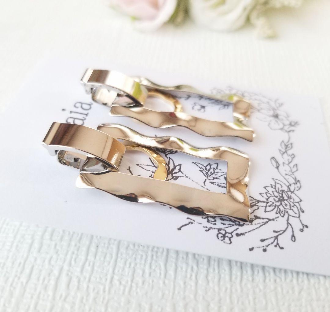洗練されたシルバーカラーの四角いデザインピアスに、同色の大きな四角いパーツを組み合わせたスタイリッシュなアイテムです。